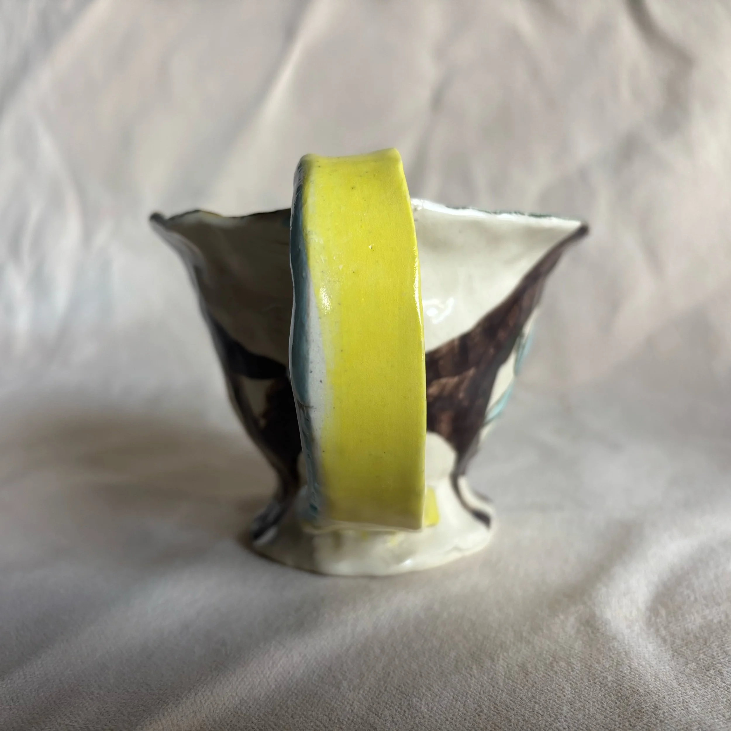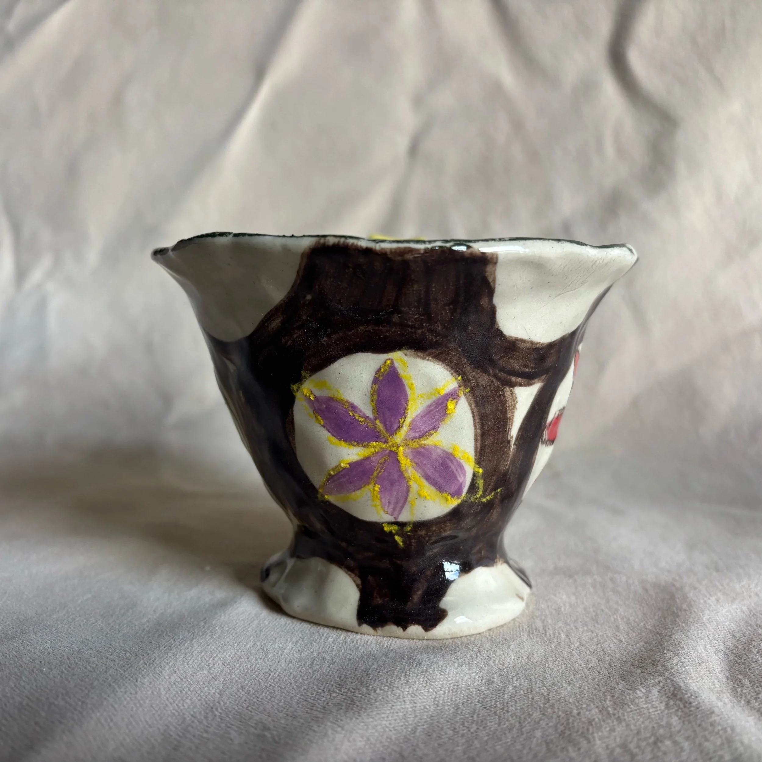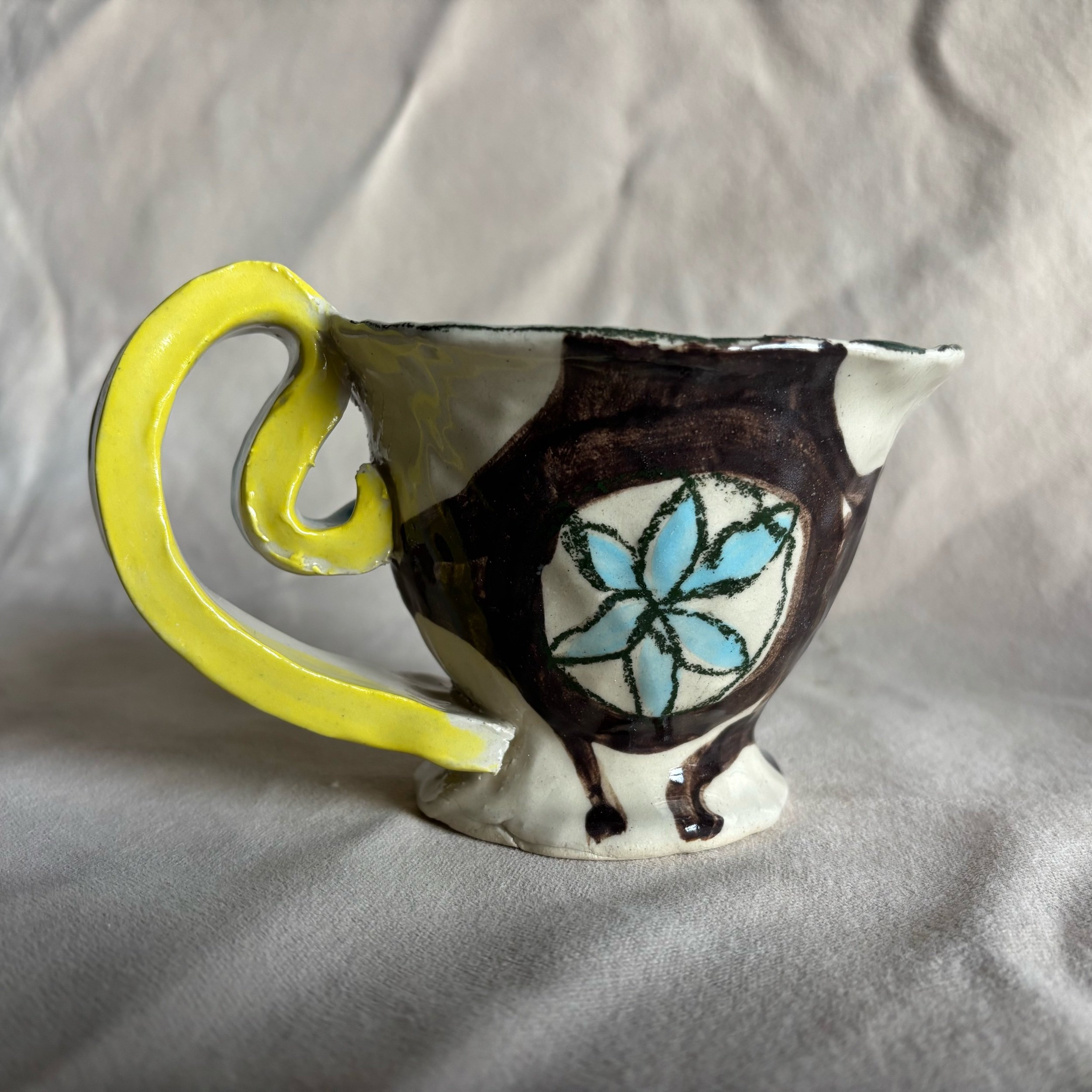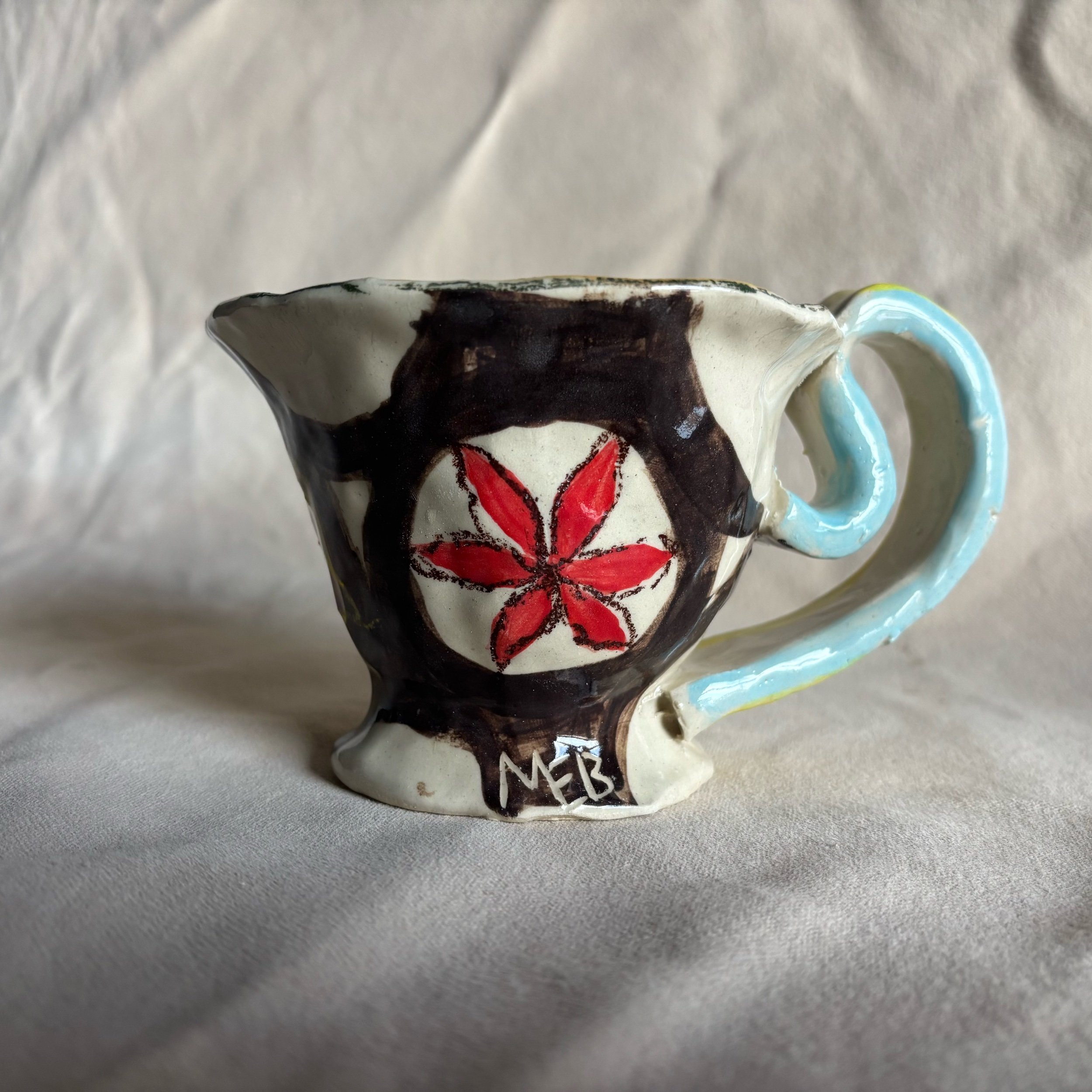 Hand pinched stoneware mug. Holds about 10 ounces. One of a kind.